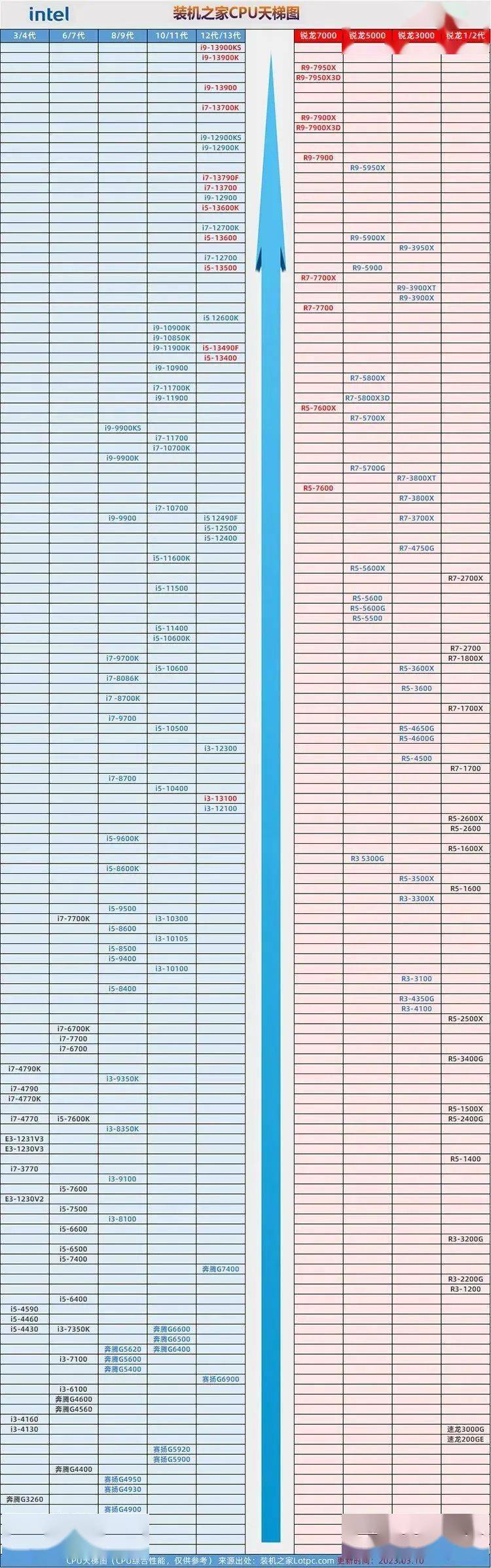 以上就是装机之家分享的台式电脑CPU天梯图2023年3月版,CPU天梯图最大的优势就是让小白最快速的了解CPU之间的性能,以便在工作及选购CPU时有所参考。