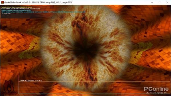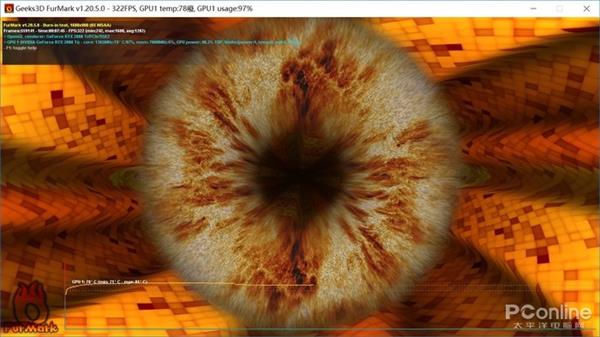 Furmark的GPU压力测试下,显卡的温度最终稳定在78℃左右,最高温度曾达到81℃。