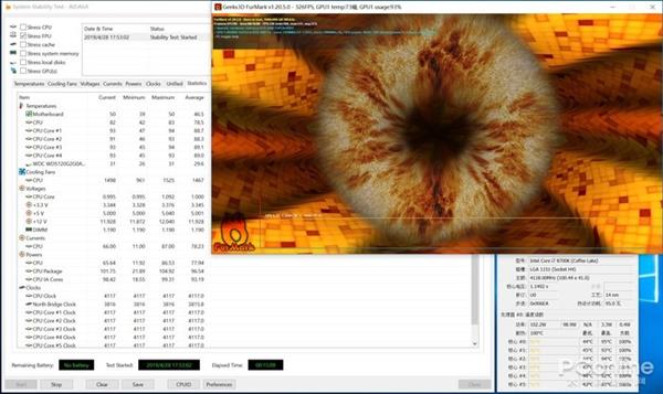 经过15分钟的CPU、GPU压力测试后,我们可以看到显卡的温度与之前②组进行GPU压力测试仅差1℃。而CPU的核心温度却大幅上升到了90℃以上,高了足足10℃。