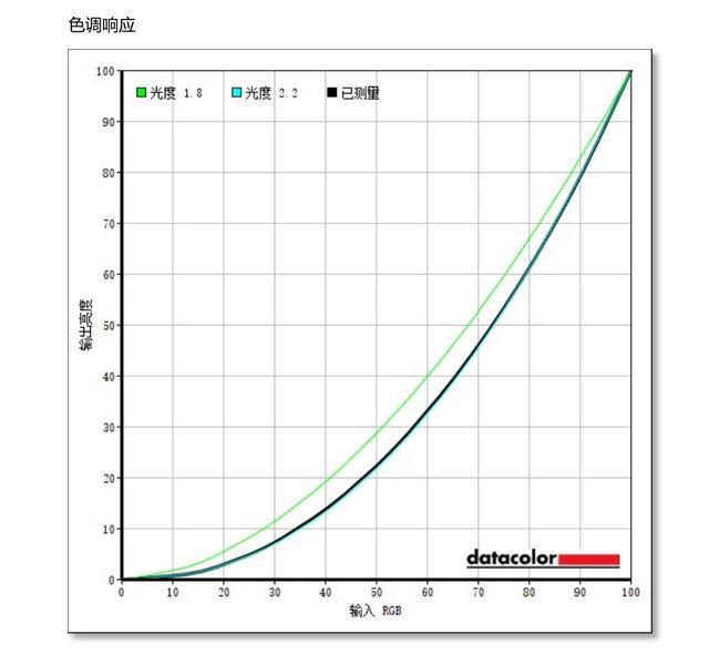 在显示器中RGB颜色的值与功率之间并非简单的线性关系,而是幂函数关系。这个函数的指数称为Gamma值,gamma2.2就是一种将总亮度非线个灰阶的方式。在色度响应测量中,川升CS27X的黑线的蓝色曲线基本重合,可见其色调响应表现不错。