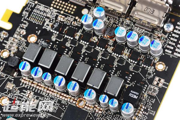 虽然散热器不够YY,不过AMD公版显卡的PCB用料还是保持了一定水准,RX 480配备了6 1相供电。