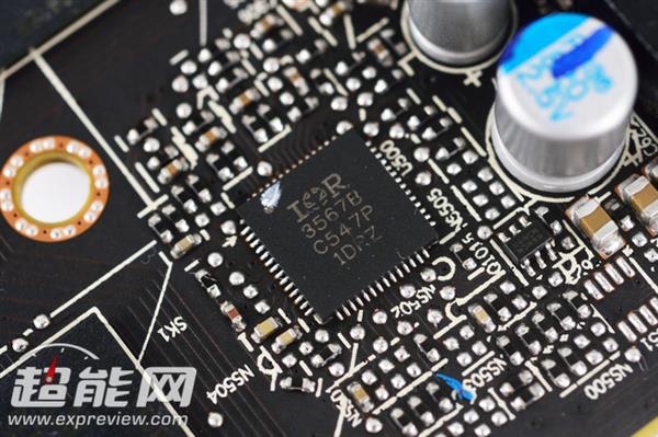 RX 480显卡的PWM主控芯片是IR3567B,这是AMD自RX 290X显卡开始一直在用的PWM主控,双路6 2相PWM主控芯片,支持AMD的SVI、SVI2及Intel的VR 12、12.5供电规范,电压变换时间小于10us,支持255级0-1.55V电压控制。