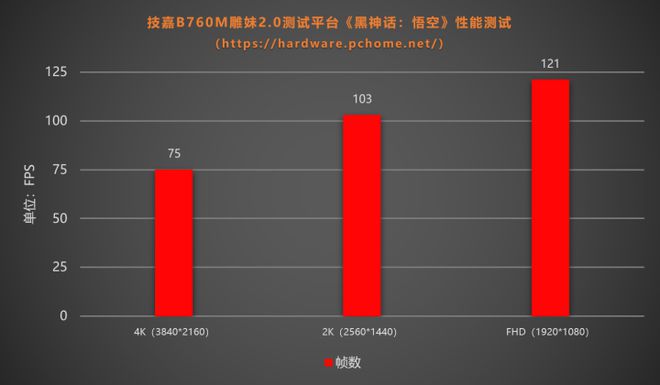 从测试结果来看,技嘉B760M雕妹2.0测试平台在这样的画质设置下足以流畅游玩《黑神线K分辨率之下也可以达到75帧的表现。